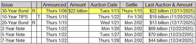 On Deck Tuesday, 1/13/26: $22Bn UST 30y Bond Auction (Reopening)