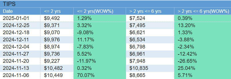 - Dealer positions <2yrs TIPS (as of 1/01) were up 121mln @9.49bln.