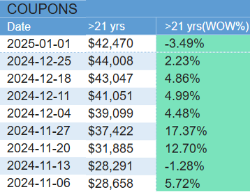 - Dealer positions in > 21 years Coupons (as of 1/01) were down 1.53bln @42.47bln.