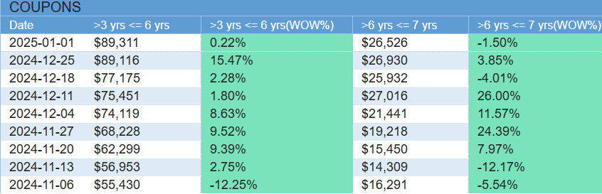 - Dealer positions in > 3 years and< 6yrs Coupons (as of 1/01) were up 195mln @89.31bln.