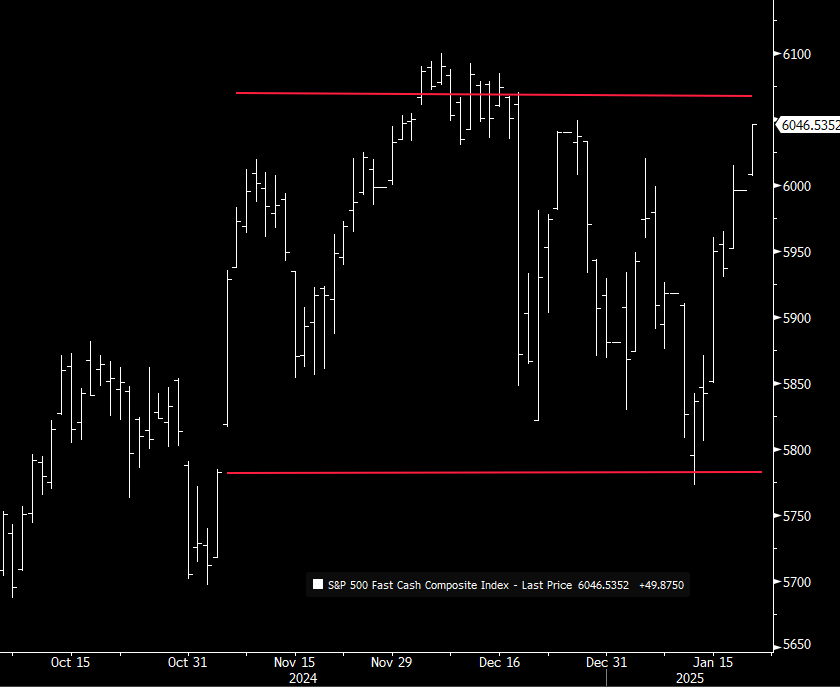 The S&P 500 has gone from the bottom of the range to the top in the last week.