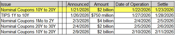 Upcoming US Treasury Supply