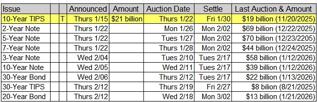 On Deck: $21 billion UST 10y TIP Auction tomorrow, Thursday (1/22/26)