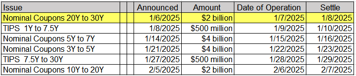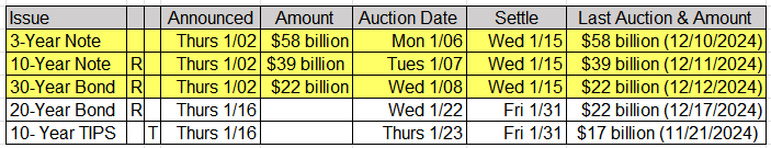 *Note that next week’s auction dates moved up by 1 day, respectively, due to the early market close on 1/9/25 in honor of the National Day of Mourning for former U.S. President Jimmy Carter.