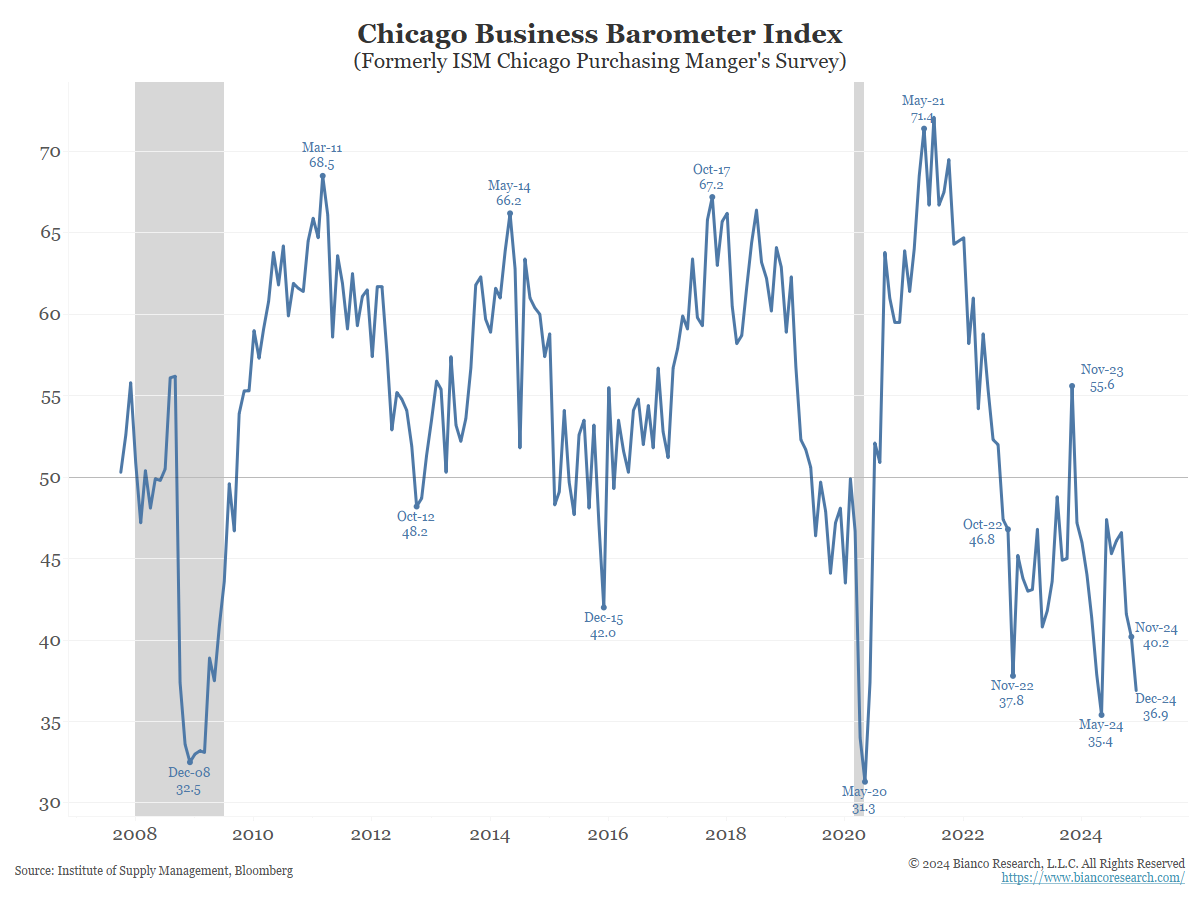 The Chicago ISM report came out on Tuesday, and it was shockingly weak. 36.9 is the second lowest reading since COVID-19.