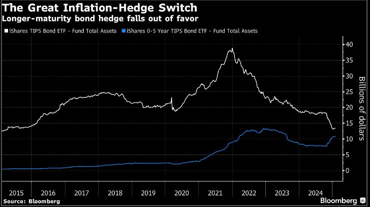 A once-dominant BlackRock Inc. bond ETF is at risk of losing its crown as the biggest inflation-hedging product of its kind, after schooling investors about the dangers of safety trades laden with interest-rate risk.