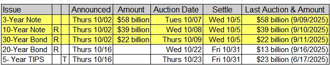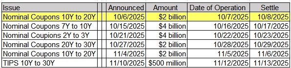 Upcoming US Treasury Supply