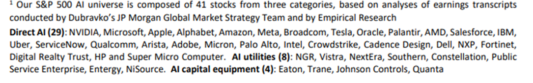 JP Morgan has identified 41 “AI-Related” stocks. As this chart shows (in the bottom of today’s “What We’re Reading”), they are now 45% of the S&P 500.