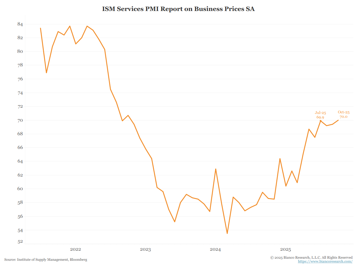 *US ISM SERVICES PRICES PAID INDEX RISES TO THREE-YEAR HIGH