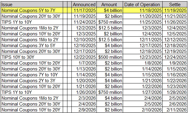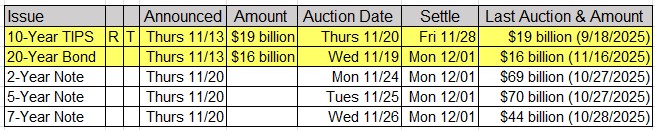 - 11/20/2025 at 08:30am EST: Initial Jobless Claims / Continuing Claims / Change in Nonfarm Payrolls
