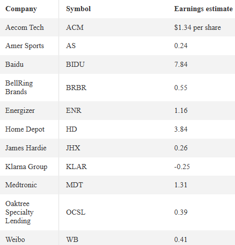 Upcoming Earnings Releases for Tuesday, November 18, 2025