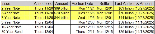 Upcoming US Treasury Supply