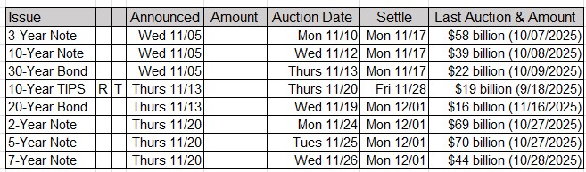 Upcoming US Treasury Supply