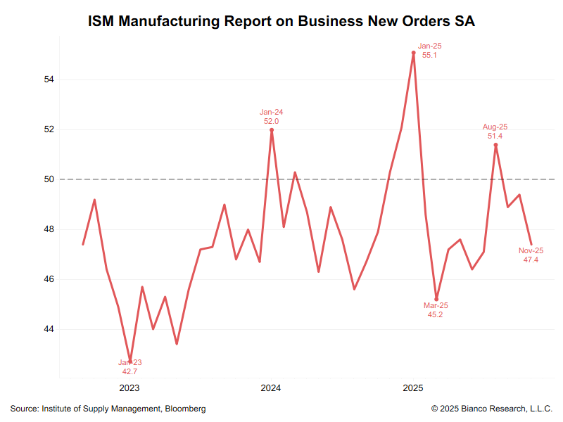 The most important component of the ISM report is new orders. It’s in the index of leading economic indicators, and people like the Fed look at it closely. It down ticked in November.