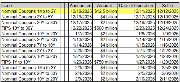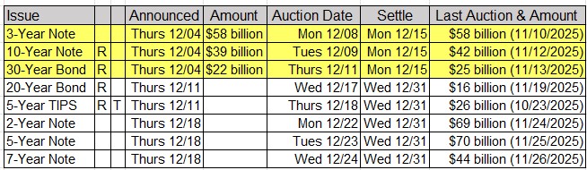 - Monday, 12/8/25: $58 Billion 3y Note Auction
