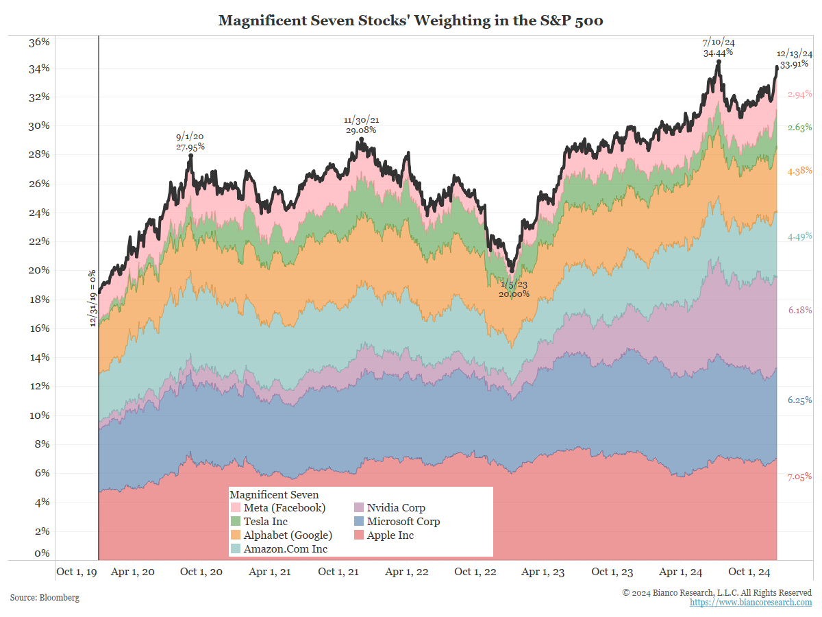 The Mag 7 is back to being over one-third of the S&P 500.
