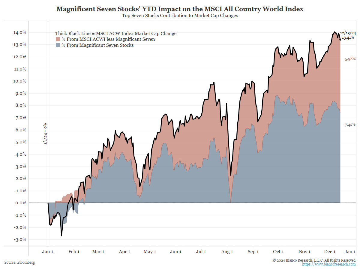 And the Mag 7 accounts for ~55% of the 2024 gains in the world stock market cap.