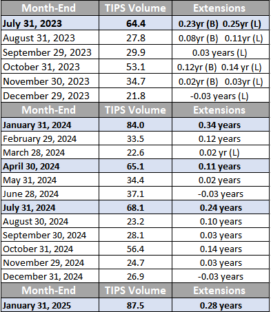 - January 31, 2025 month-end TIPS extension: 0.28 years