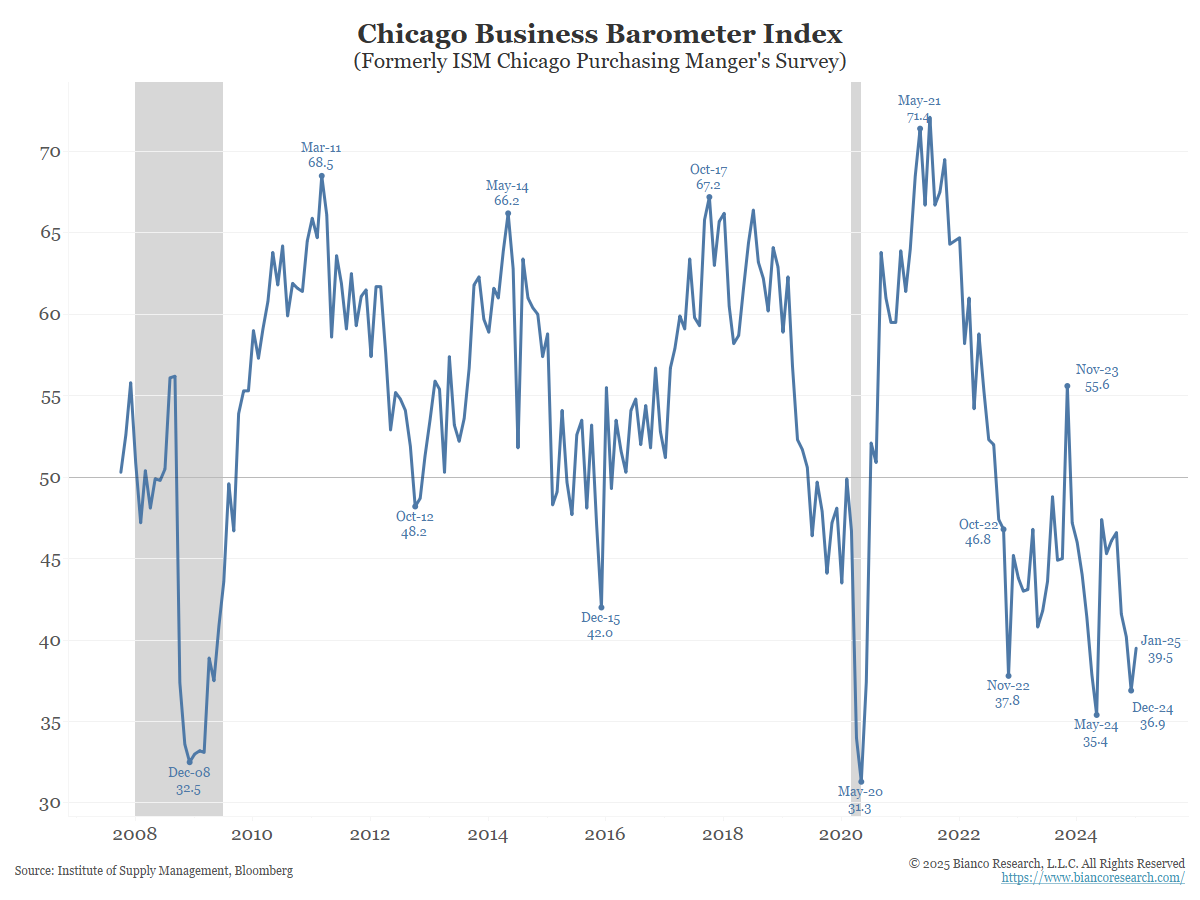While the national ISM is back above 50, the Chicago ISM (known as the Chicago Business Barometer) is still below 40. Chicago ISM is not an economic indicator… it is a plea for help.