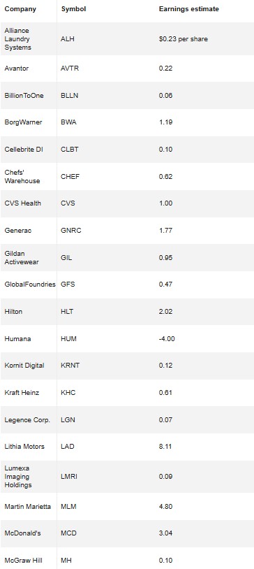 Upcoming Earnings Releases for Wednesday, February 11, 2026