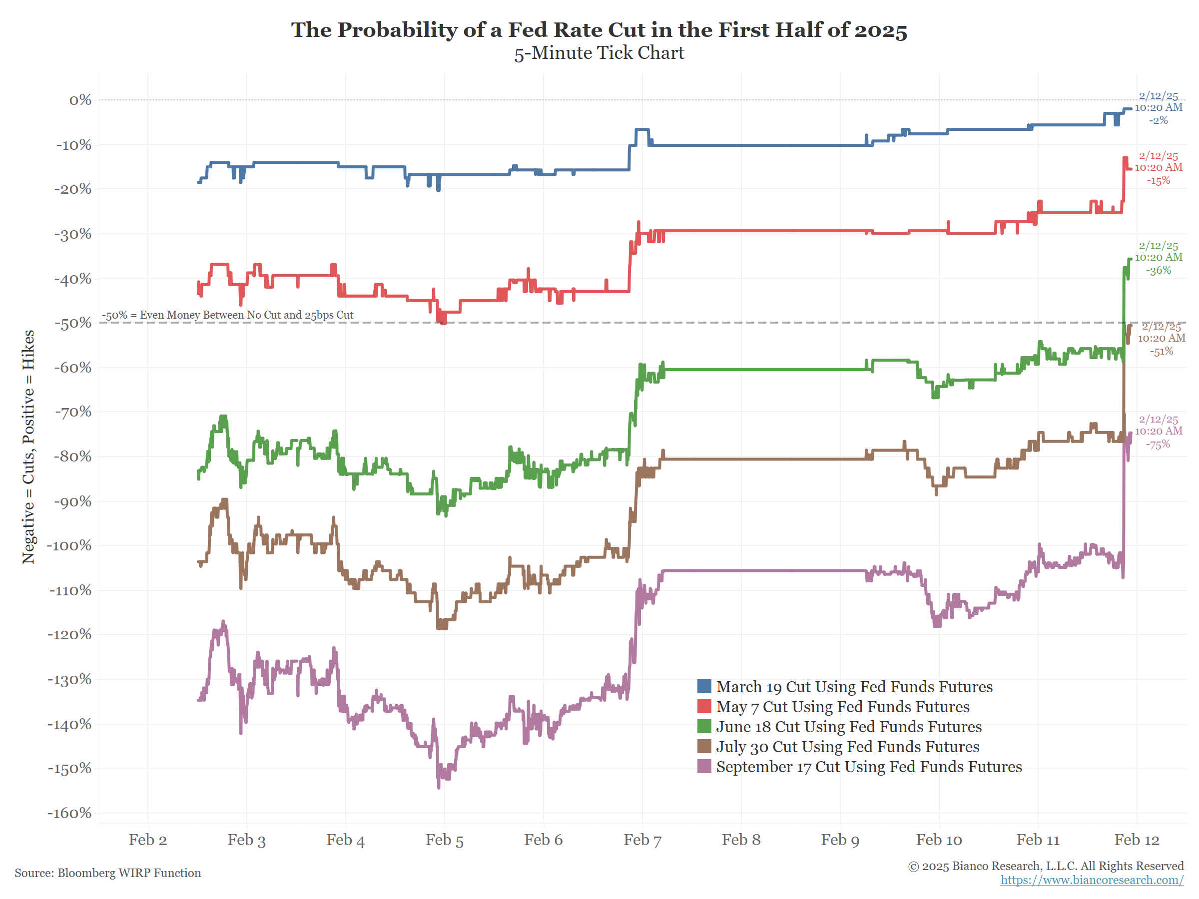 - After a stronger-than-expected CPI today at 3.0% YoY, stay tuned for PPI which will be released tomorrow, Thursday (2/13/25) at 8:30am EST