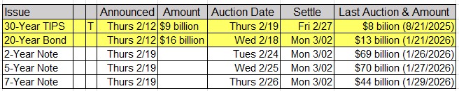 - 2/23/2026 at 10:00am EST: Factory Orders / Ex Trans / Durable Goods Orders / Ex Transportation