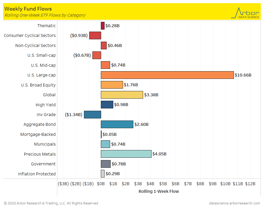 Arbor Data Science: Investor Flows – U.S. Large Cap ETF Inflows Gain Traction