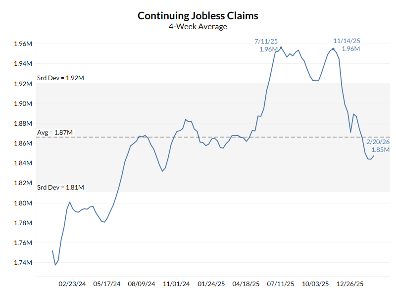 - 3/05/2026 at 08:30am EST: Initial Jobless Claims / 4-Wk Moving Avg / Continuing Claims