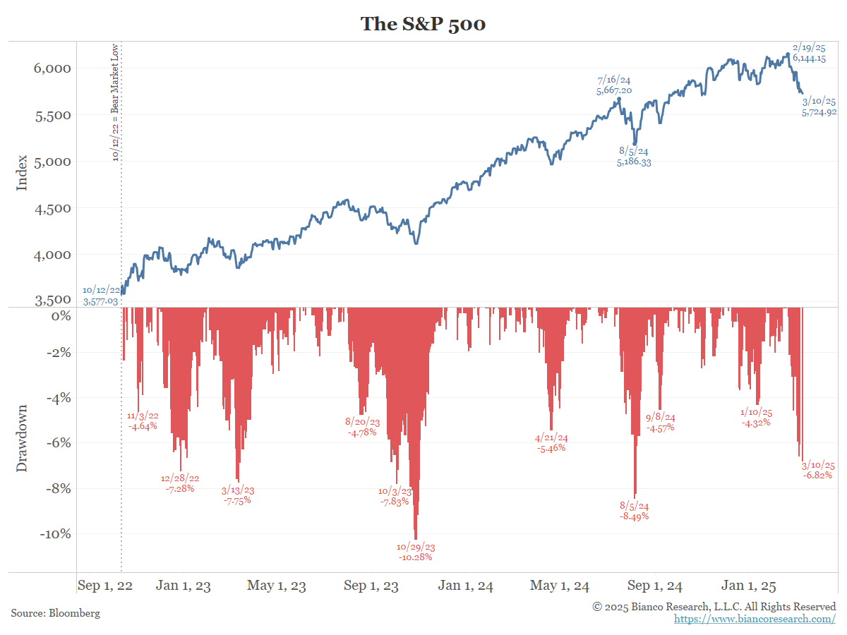 Here is a drawdown chart of the S&P 500. I updated its March 10 level to where it is currently trading pre-market. The correction now is just less than 7%.