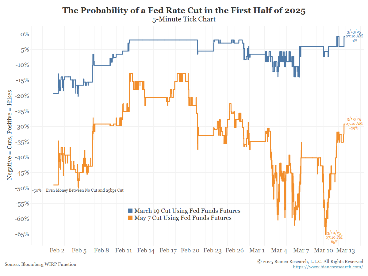 If tariffs will crush the economy, it should be evident by May. Yet the market does not think the Fed will find a reason to cut in two months.