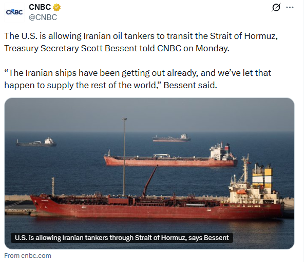 Iran is getting 50% more for its crude and getting all their production out. They are making MORE money now than before the war. They will be happy with this status quo forever. Next up is the rest of the Gulf States getting mad. Will they attack Iran?