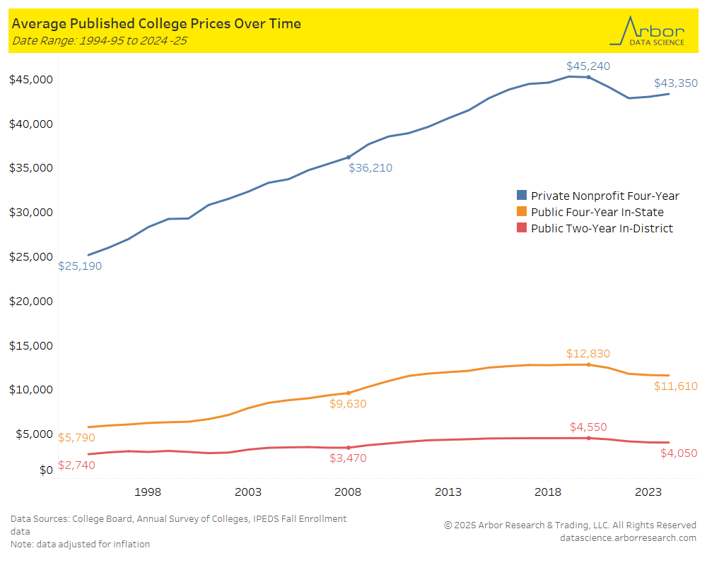 Arbor Data Science: The Increasing Price Tag of Education in the U.S.