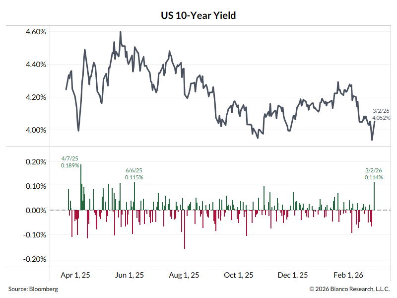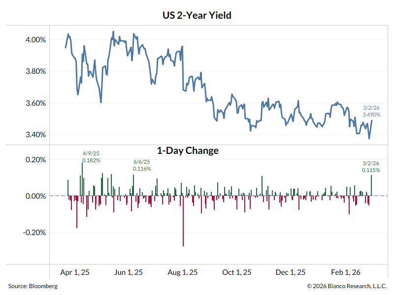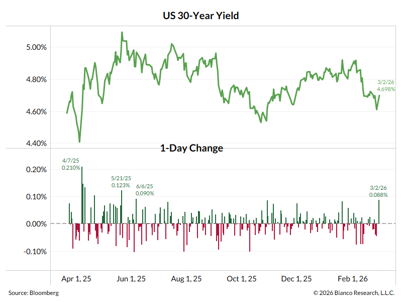 10-year yields … between the ISM and crude oil, up 11.4 bps today. Effectively equaling the June 2025 move, or the biggest one-day yield rise in 8 months, and 1-tick away from being the largest one-day yield rise since early April 2025 (Liberation Day).