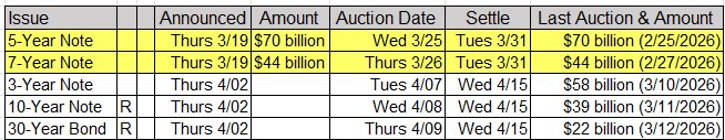Upcoming US Treasury Supply