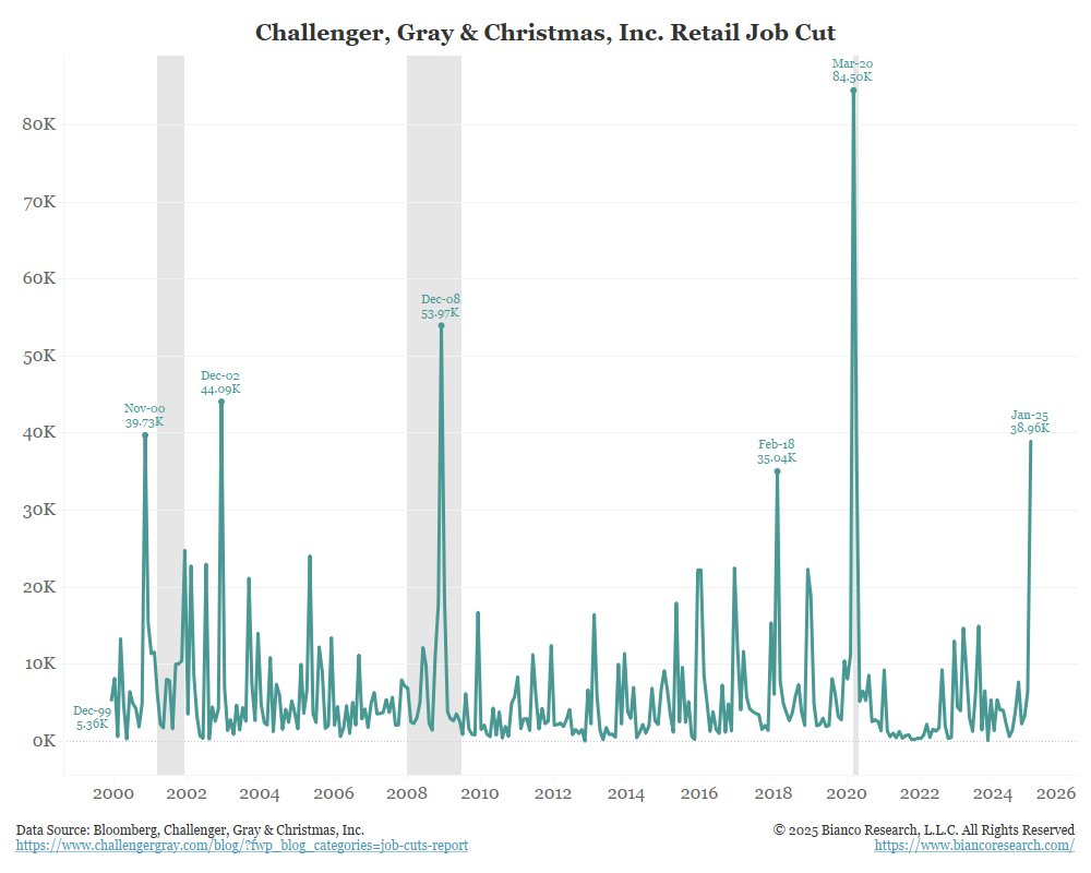 ChallengerGray: Job Cuts Surge on DOGE Actions, Retail Woes; Highest Monthly Total Since July 2020