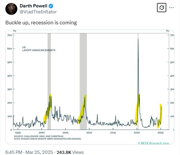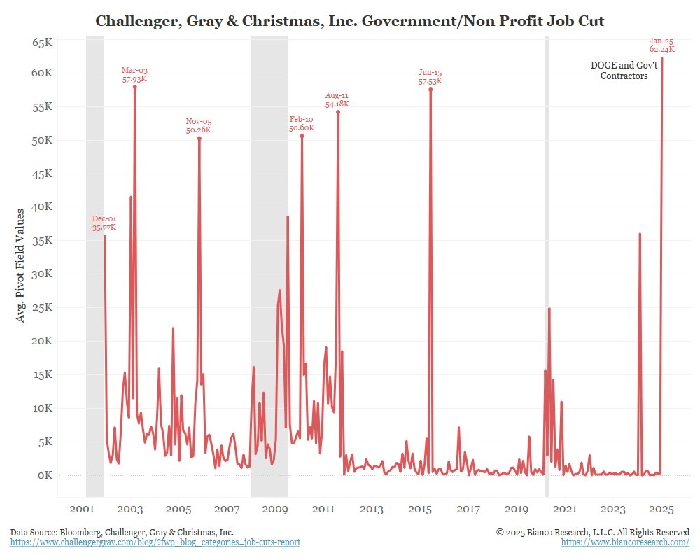 Careful with the chart above. Challenger noted that most of these job cuts are government and government contractors (also DOGE).