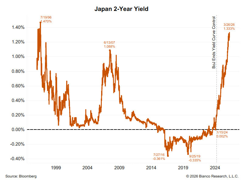 JAPAN 2-YEAR YIELD RISES TO 1.315% FOR FIRST TIME SINCE 1996