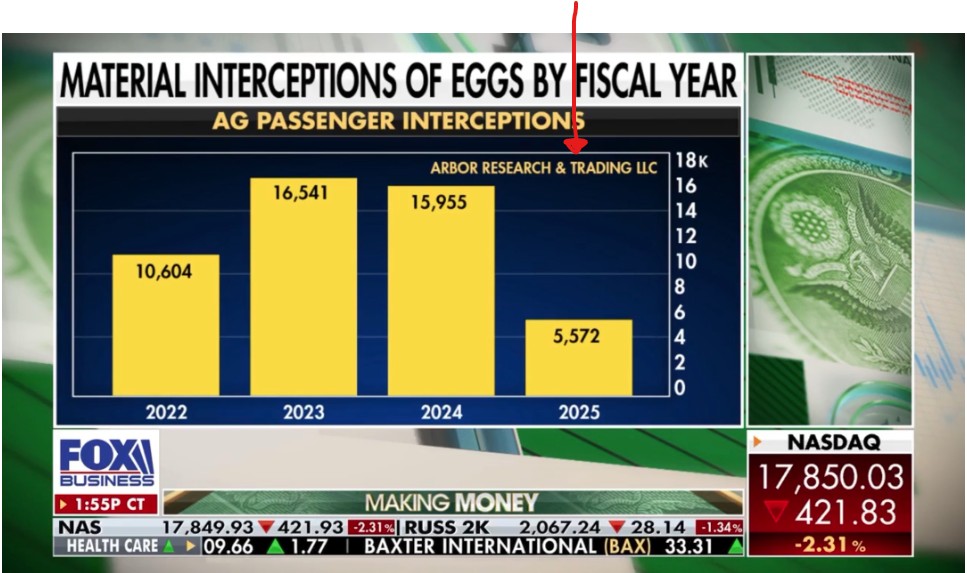 Arbor Data Science: Seizures of Egg Products at US Border Surpass Seizures of Fentanyl