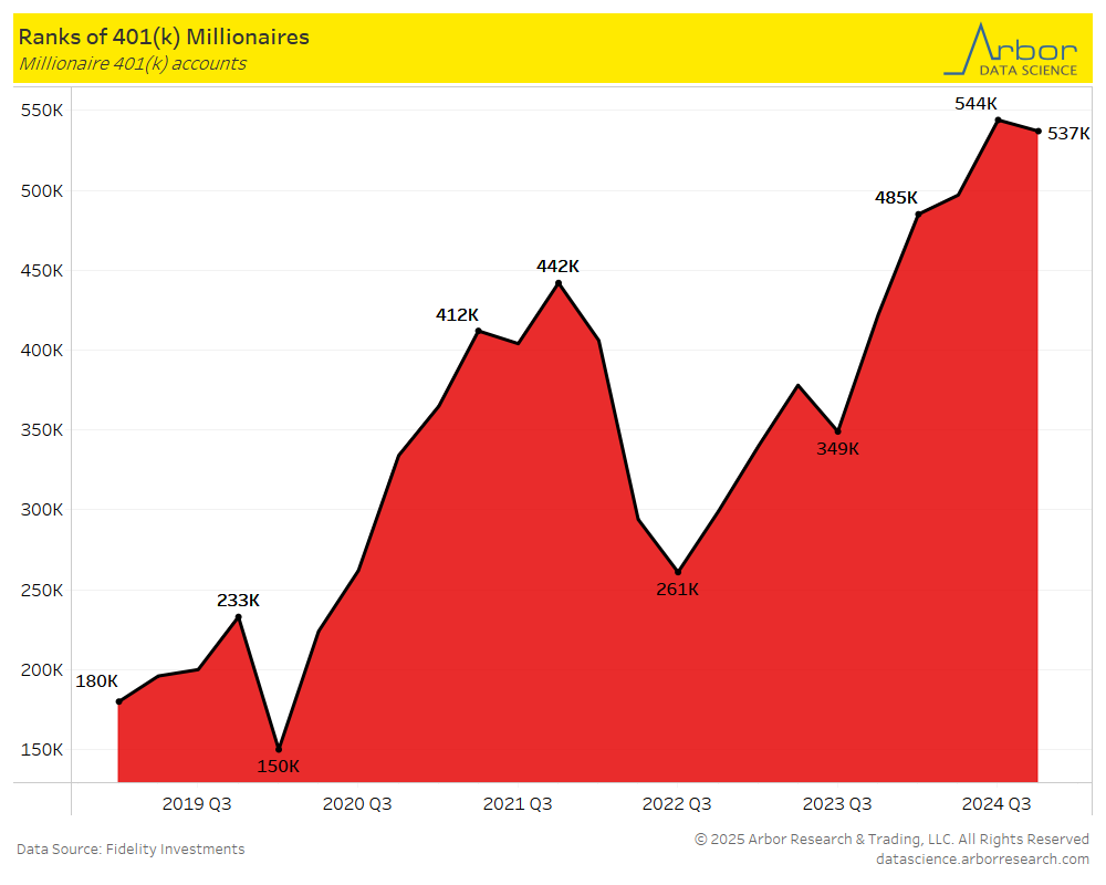 Arbor Data Science: The Number of 401(K) Millionaires with Retirement Accounts at Fidelity