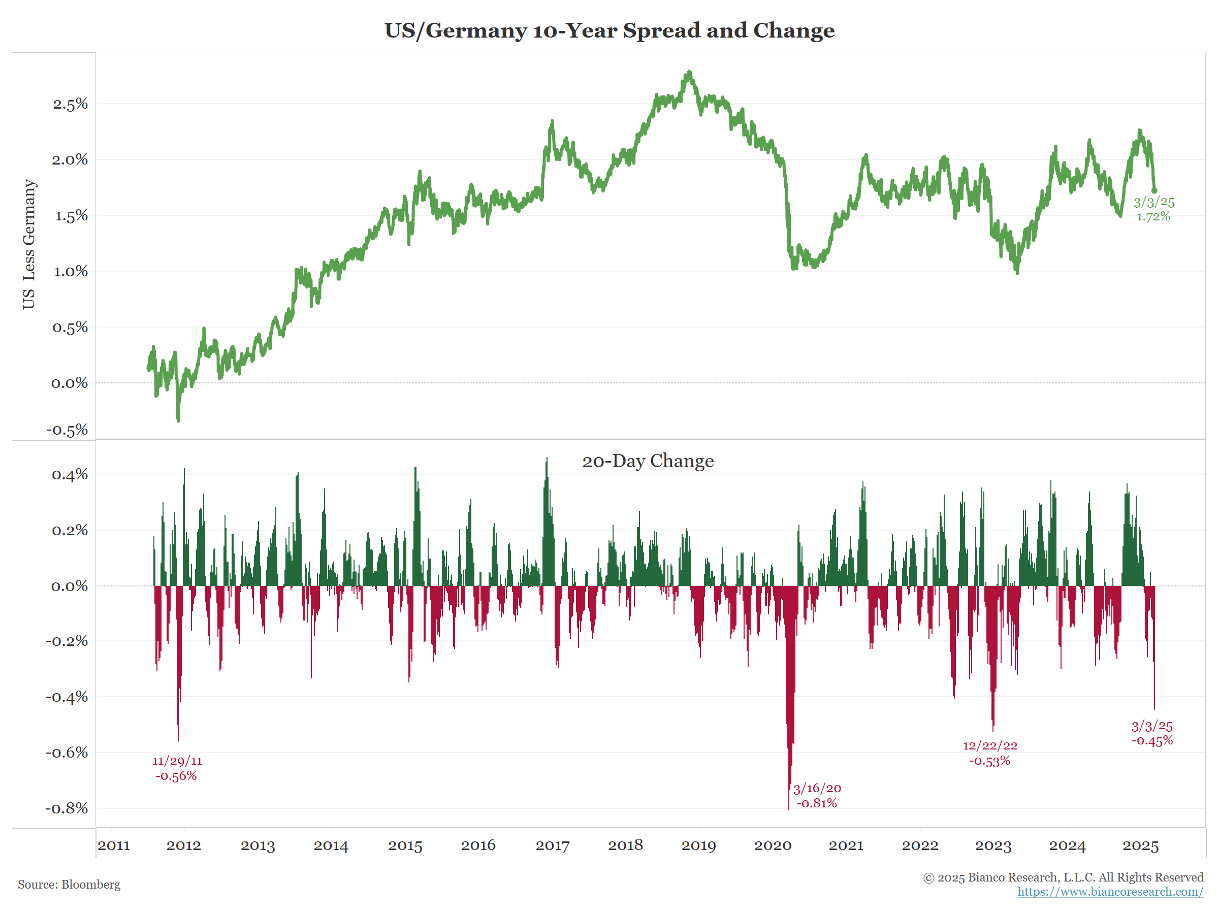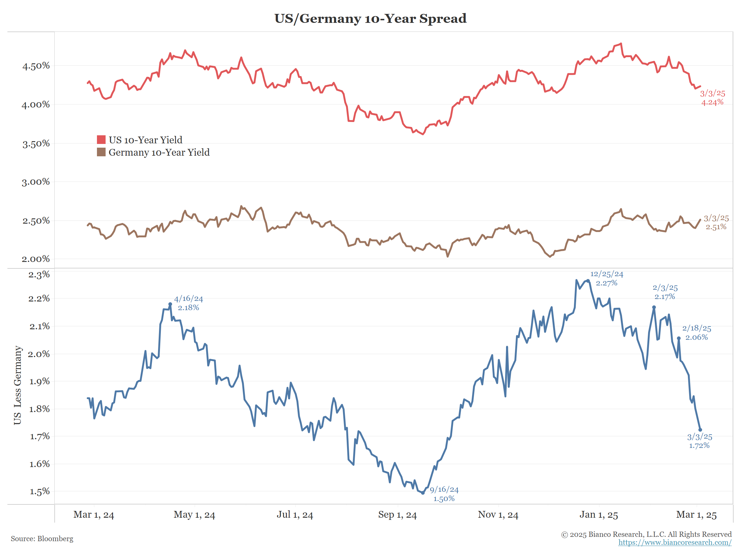 US yields are going down and German yields are going up. The result is the spread is collapsing.
