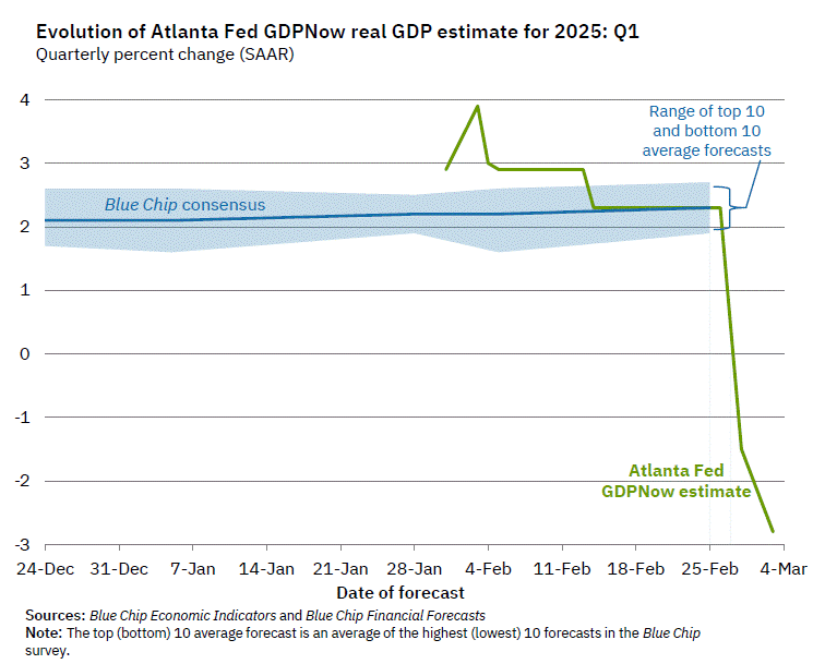 Net exports are now dragging down GDP by 3.57%, more than the overall estimate of -2.8%. New orders are down because of tariffs.