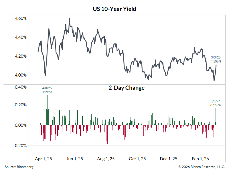 2-day rise in the 10-year yields is now the highest since Liberation Day.
