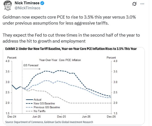 Lots of attention to Goldman raising it’s recession forecast to 35%. Less so about them raising their inflation forecast. Cut rates with rising inflation will be taken badly by the bond market.