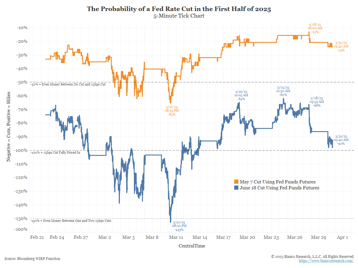 May 7 is the most important Fed meeting of the year. If the Fed cannot find a reason to cut next month, they will not find a reason this year. June’s probability will head to zero if they hold on May 7.