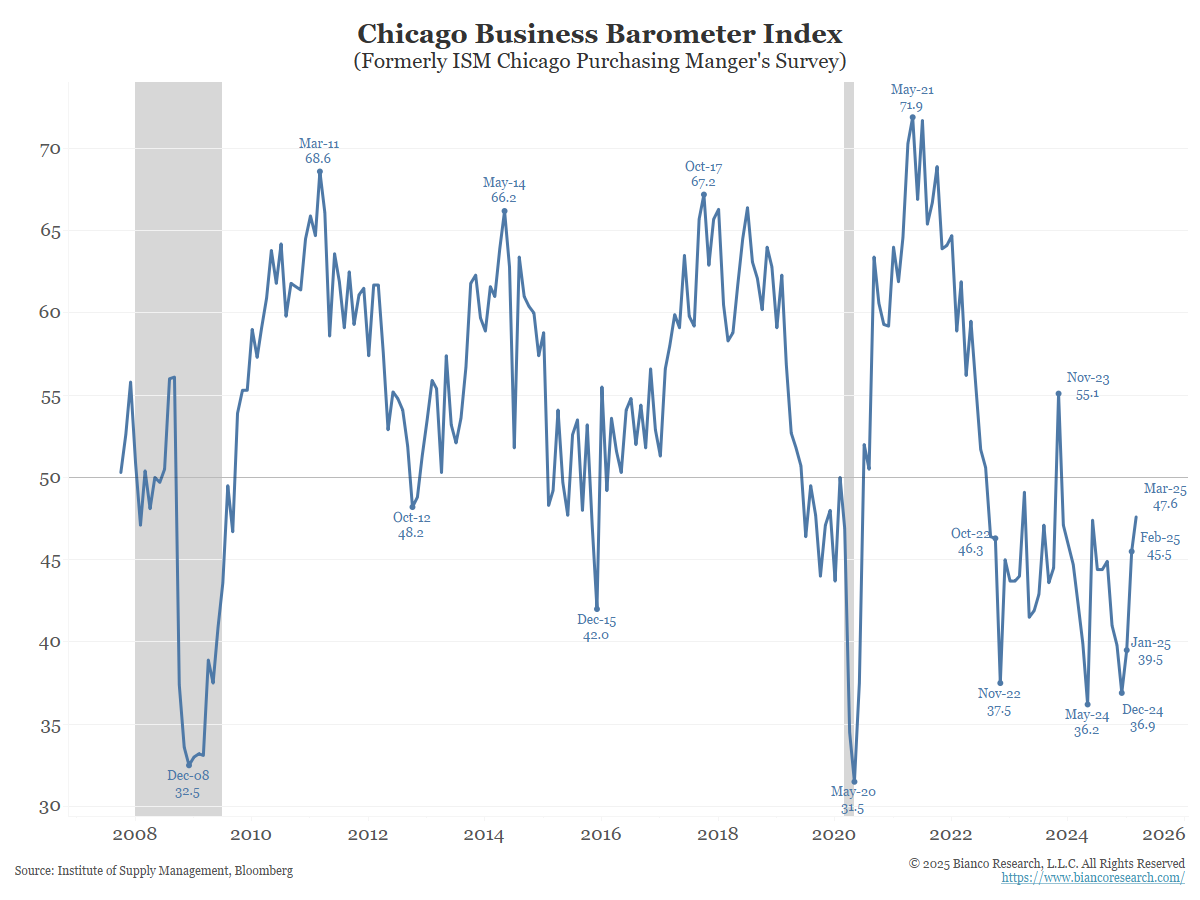 - 4/01/2025 at 10:00am EST: ISM Manufacturing & ISM Prices Paid