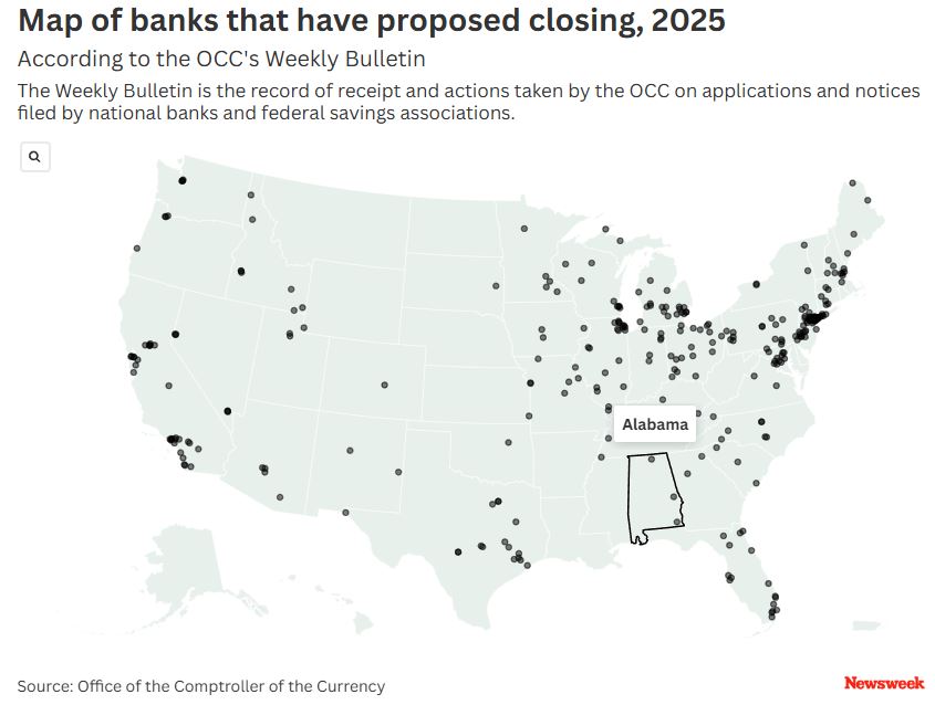 Newsweek: Map Shows Bank Closures Across US in 2025 So Far