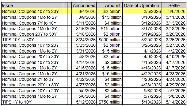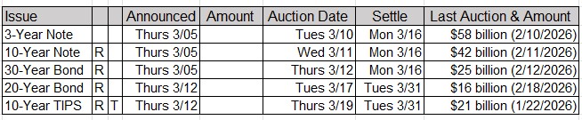 Upcoming US Treasury Supply