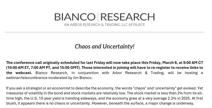 Conference Call Friday, March 06, 2026, Featuring Jim Bianco