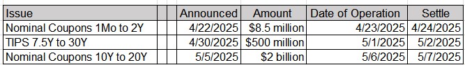 Tentative Schedule of Treasury Buyback Operations