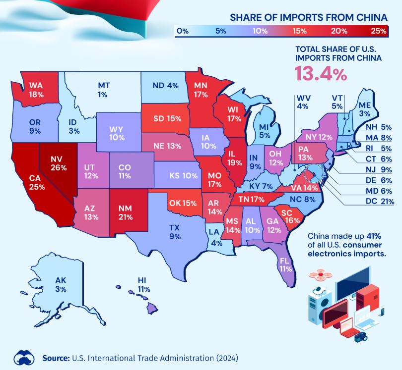 Visual Capitalist: Mapped: Which U.S. States Import the Most from China?